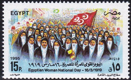 طابع أصدره البريد المصري سنة 1995 بمناسبة اليوم القومي للمرأة المصرية، 16 مارس 1919.
