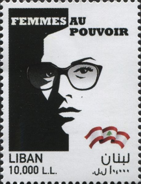 طابع أصدره البريد اللبناني سنة 2017 بمناسبة اليوم العالمي للمرأة بشعار "Femme au pouvoir".